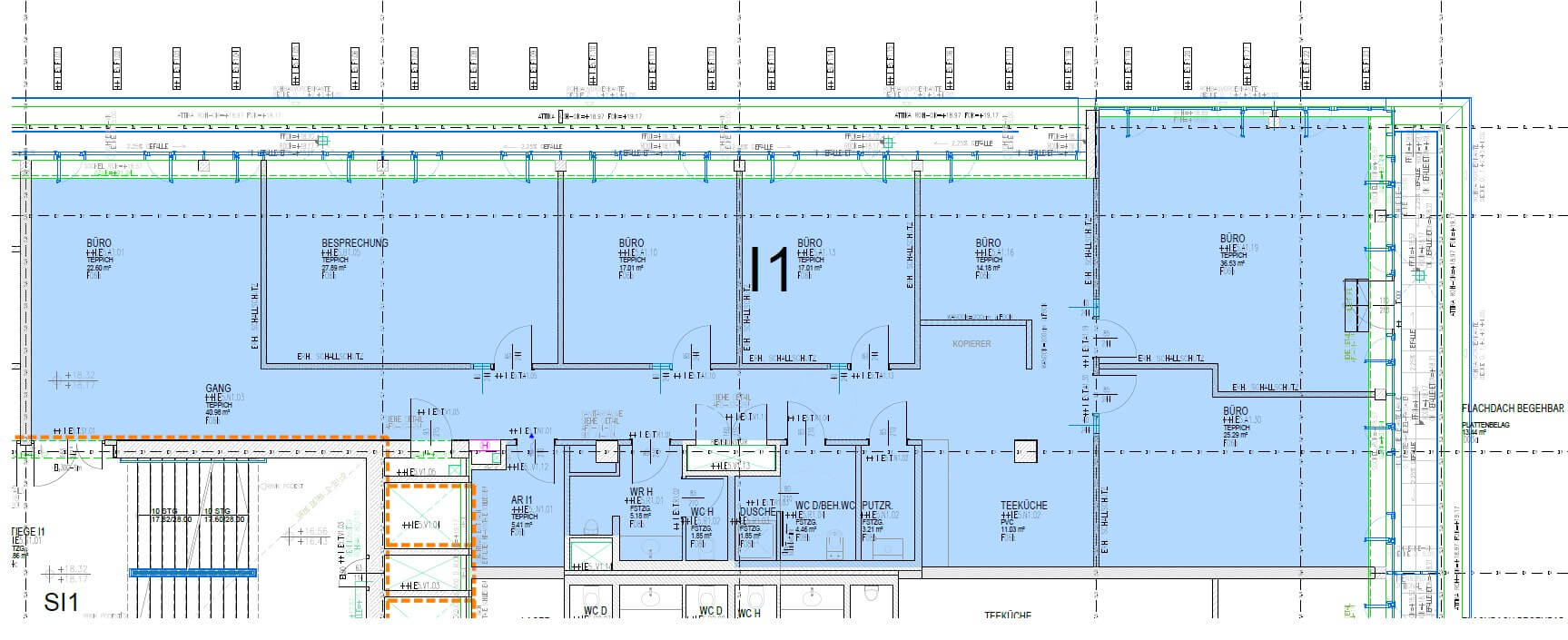 - 2-fold air exchange in the office rooms
