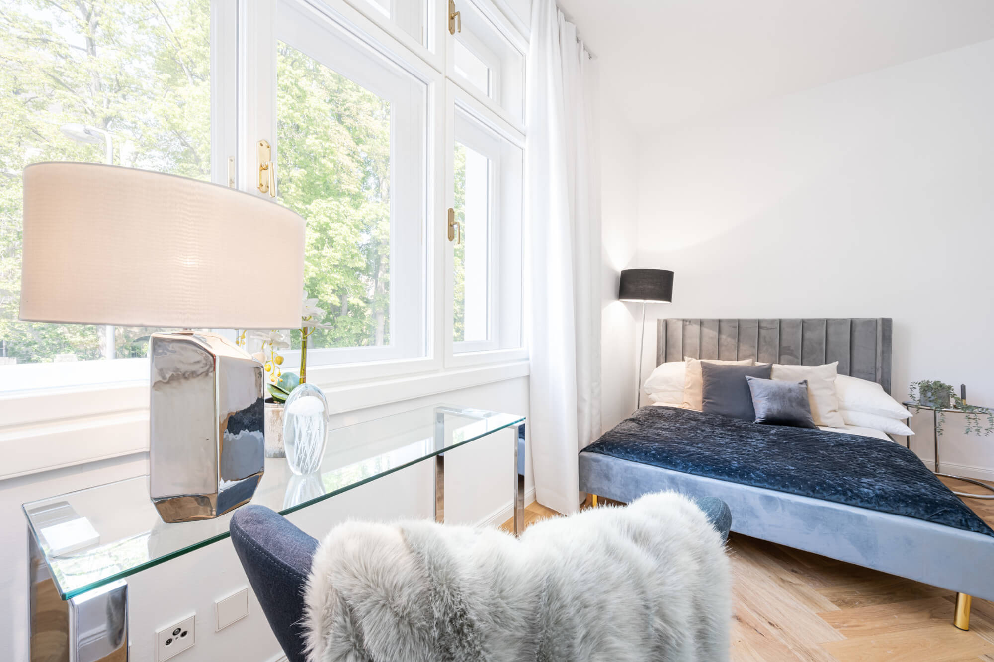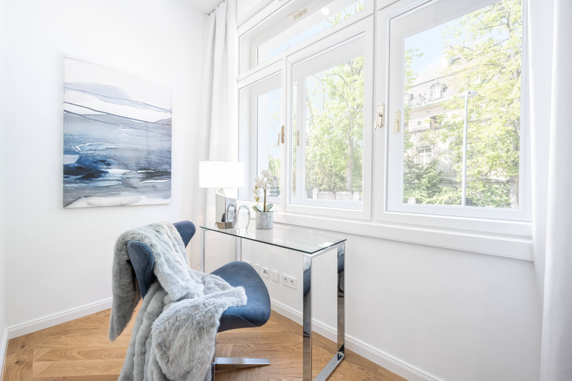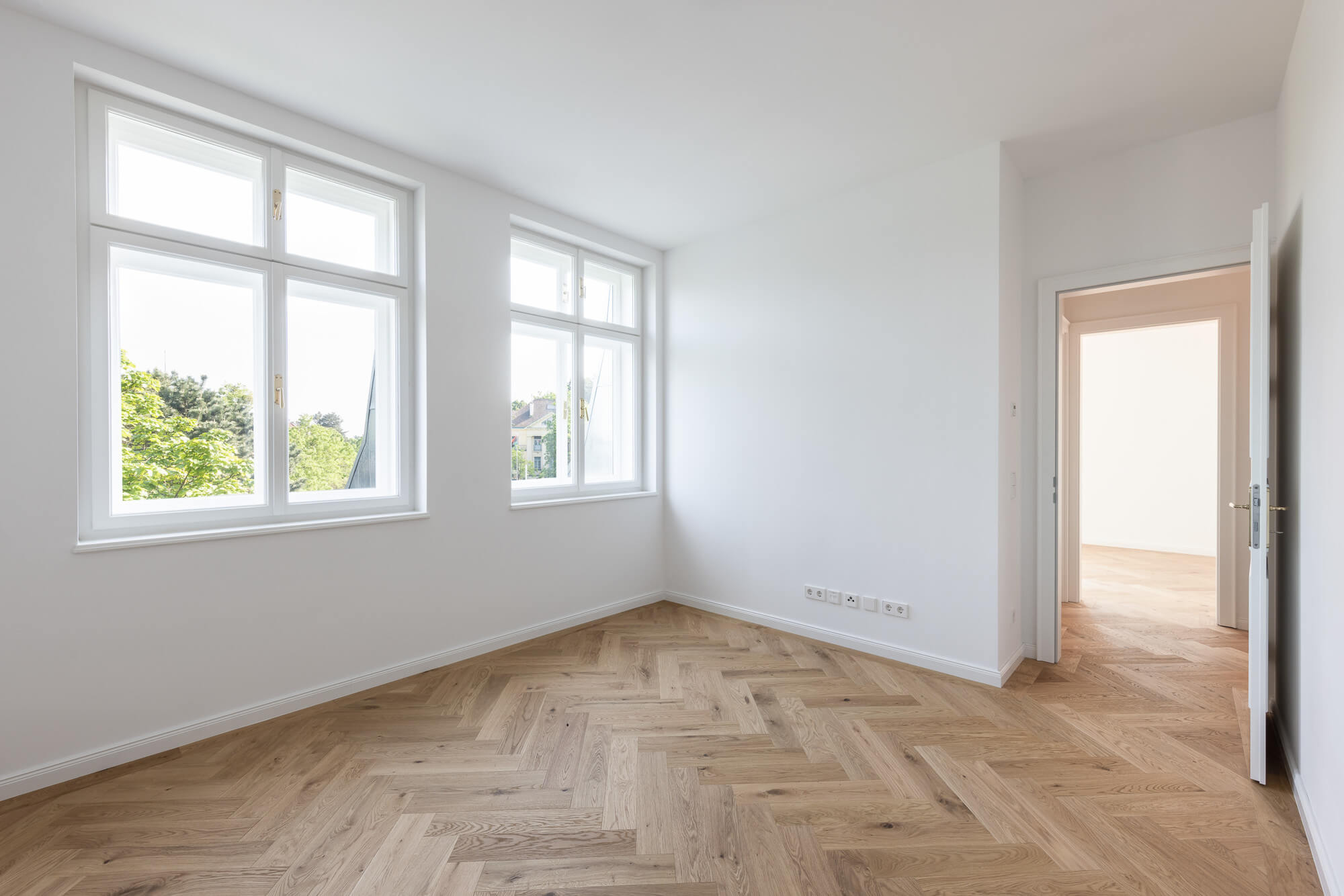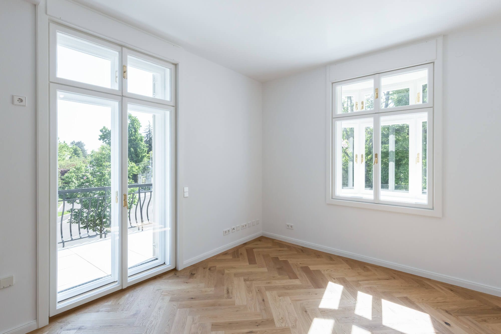 - New box windows with electrically operated sun protection
