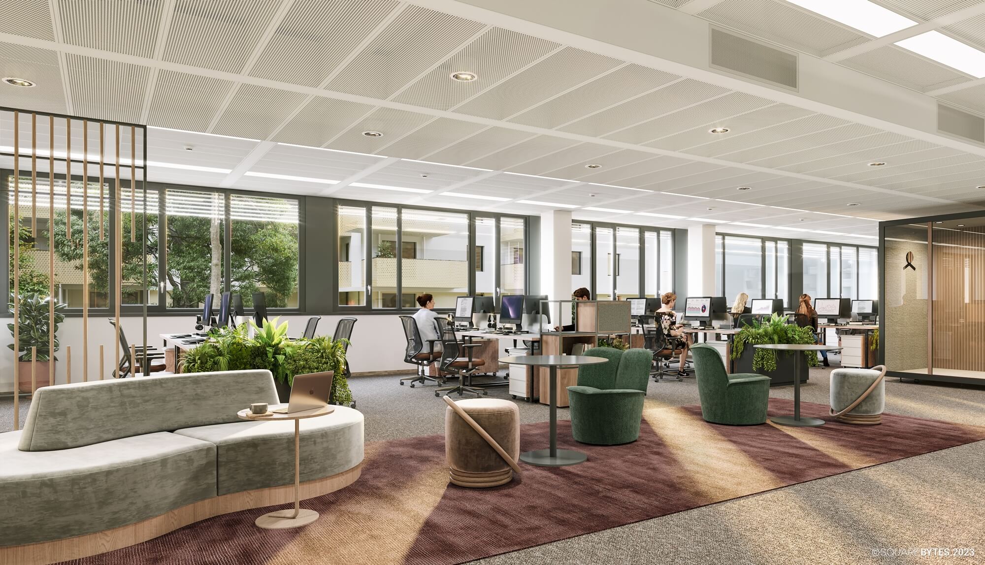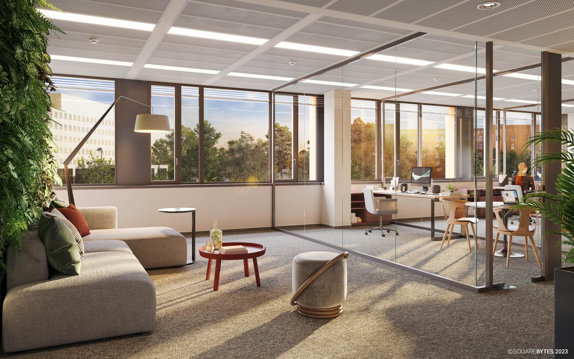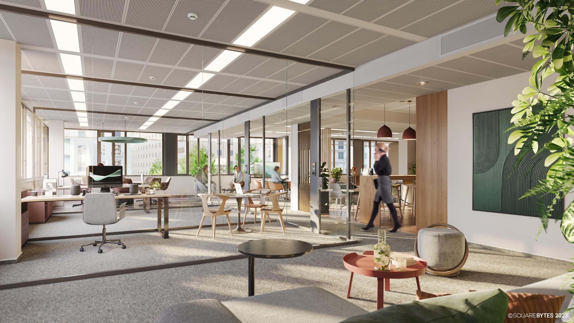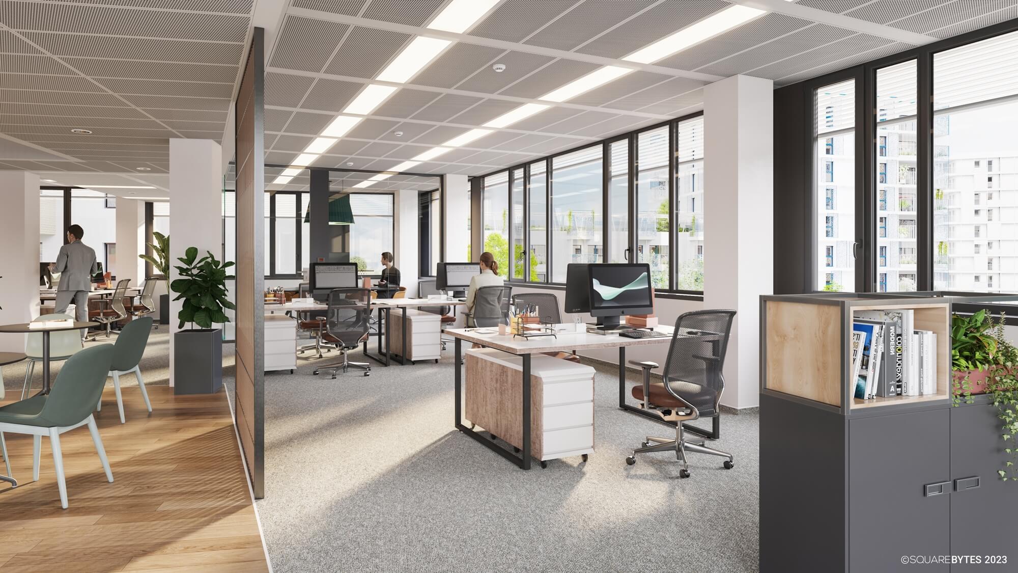 - 2.80 m room height in the offices
